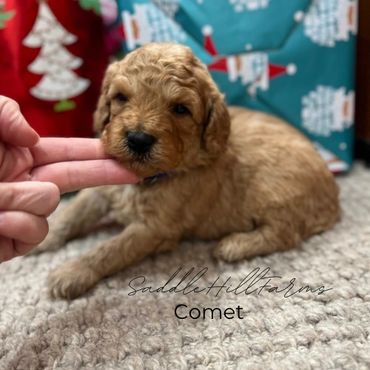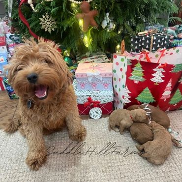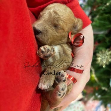 Poppy and Tux have delivered another litter of f1bb toy goldendoodles. 12-17lbs average adult size range. Typically no shedding. curly to wavy hair. Ready to leave January 27th. Pet prices listed, no breeding rights