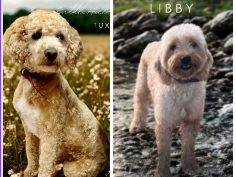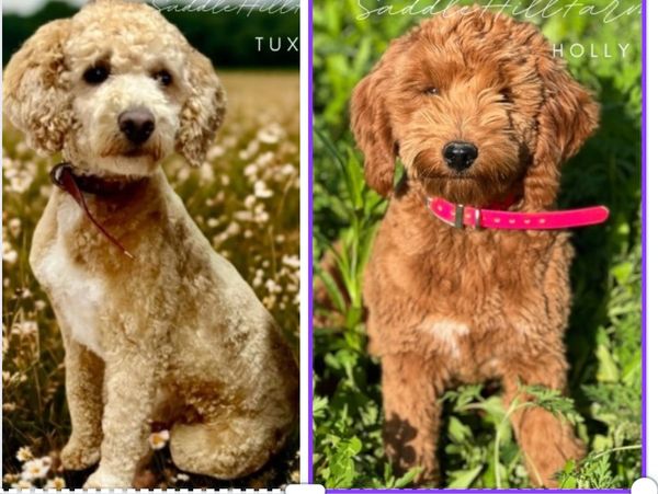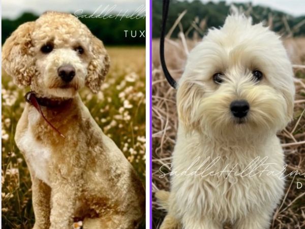 Delivered 10/18/25 Libby and Tux have paired for a litter of F1B mini/petite goldendoodles. generally no shedding, average adult size range is 15-25lbs. December gohome $1800 price range